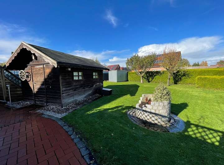 Das Grundstück umfasst ca. 859 m² und bietet Ihnen viele Gestaltungsmöglichkeiten. Neben einer schönen überdachten Terrasse laden eine kleine Werkstatt, ein Blockhaus und die Garage zu vielfältiger Nutzung ein. Der liebevoll angelegte Garten rundet das stimmige Gesamtbild dieses Hauses ab.