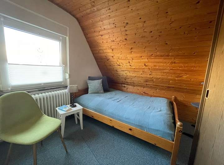 Im Obergeschoss befinden sich ein großes Zimmer sowie zwei kleinere Zimmer – ideal als Kinder-, Arbeits- oder Gästezimmer – und ein Flur.