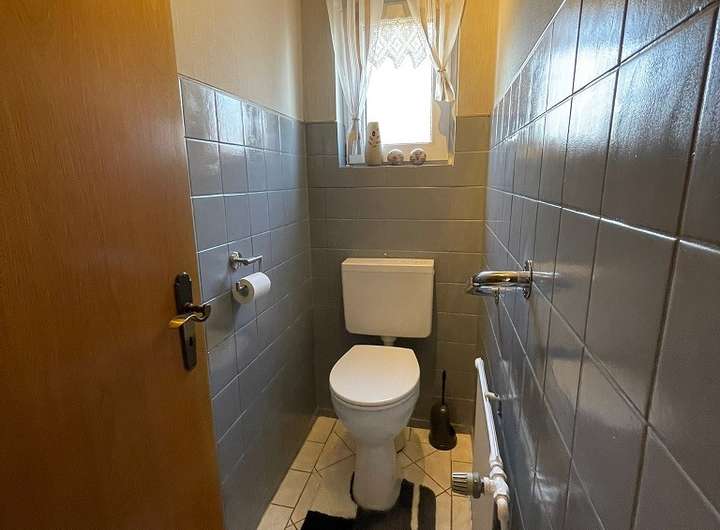 Im Erdgeschoss erwartet Sie eine einladende Raumaufteilung: Eine gemütliche Kochküche lädt zum gemeinsamen Kochen und Verweilen ein. Das großzügige Wohnzimmer bietet viel Platz für familiäre Aktivitäten und gesellige Abende – auf Wunsch könnte dieser Raum auch wieder geteilt und beispielsweise um ein zusätzliches Schlafzimmer ergänzt werden. Ein Gäste-WC rundet diesen Bereich ab.