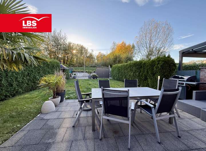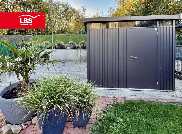 Der Garten bietet eine Terrasse direkt am Haus und eine zweiten, schöne Terrasse im hinteren Bereich. Zwischen dem Gartenhaus (Fabrikat Biohort) und dem Grünblick lädt eine ruhige Oase zum Entspannen ein. Die zum Haus gehörende Garage verfügt über einen direkten Zugang zum Garten und runden das Angebot ab.