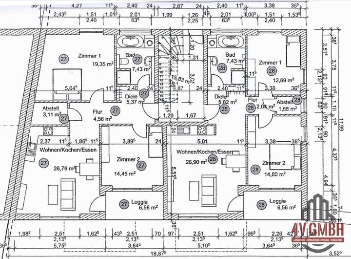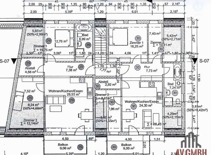 Gesamtwohnfläche: 324,84 m² auf vier Einheiten