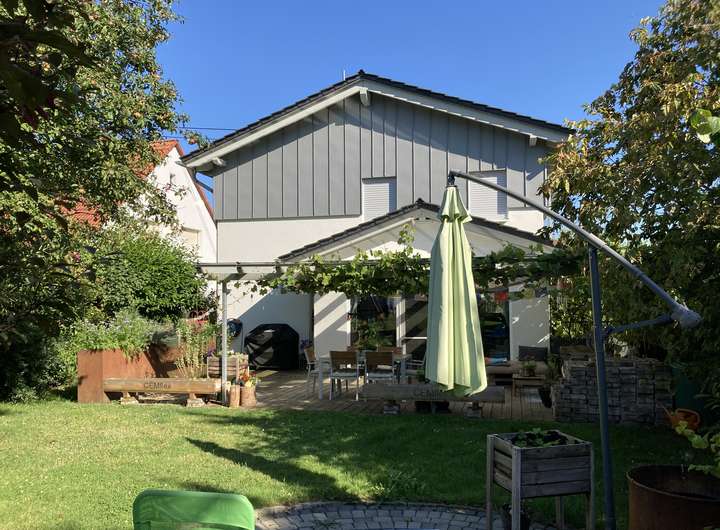 Modernes Einfamilienhaus mit Sauna, Carport und idyllischem Garten. Dieses gepflegte Haus mit 191 m² Wohnfläche und 107 m² Nutzfläche bietet Familien viel Platz, Komfort und Stil. Der Keller überzeugt mit großzügiger Sauna mit Holzfeuerung, Waschküche, Doppelgarage und eigenem Zugang – ideal für Wellness, Hobby und praktische Nutzung. In massiver Bauweise mit hochwertigem Mauerwerk (Lambda 0,11) errichtet, wurde das Haus bereits 2010 nach EnEV gebaut und entspricht heute etwa KfW 70. Ölbrennwertheizung, Solaranlage und mehrfachverglaste Fenster sorgen für moderne, energiesparende Technik. Ein großes Carport mit Dachbegrünung, eine weitläufige überdachte Terrasse mit Echtglasverglasung sowie der vollständig angelegte, eingewachsene Garten bieten viel Privatsphäre, Erholung und Freizeitmöglichkeiten. Die Außenanlagen wurden liebevoll gestaltet, der Pflastermix aus Naturstein und Buntglas-Elementen setzt stilvolle Akzente. Helle, großzügige Räume mit offenem Wohnkonzept, hochwertige Bodenbeläge und liebevolle Details schaffen ein wohnliches Ambiente, in dem sich die ganze Familie sofort wohlfühlt. Die ruhige Lage, kombinierbar mit guter Anbindung an Infrastruktur, rundet das Angebot perfekt ab. Hochwertige Bauweise, durchdachte Ausstattung und gemütliches Ambiente machen dieses Zuhause ideal für Familien, die ein gepflegtes, charmantes Haus mit Wohlfühlfaktor und langfristiger Wertbeständigkeit suchen – hier können Sie schon bald einziehen und Ihr neues Familienparadies genießen.