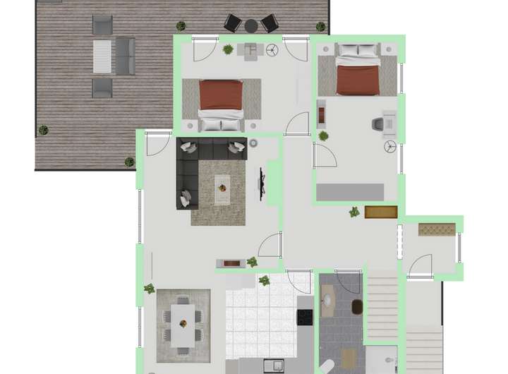 Drei große Räume mit vielfältigen Nutzungsmöglichkeiten: z. B. Wellnessbereich, Homeoffice oder Gästewohnung