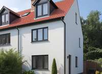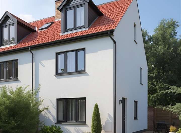 Das Haus ist mit einem Satteldach Dach geplant und fügt sich harmonisch in die bestehende Bebauung ein. Die moderne Architektur, klar strukturierte Grundrisse und große Fensterflächen sorgen für ein helles und offenes Wohngefühl.