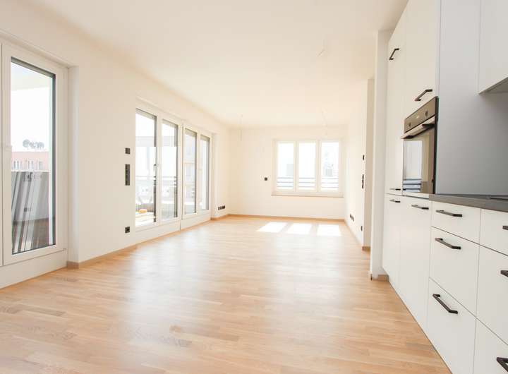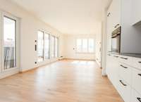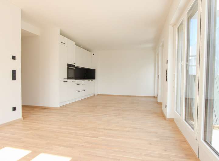 Ein Wohntraum mit großzügiger Dachterrasse. Diese wunderschöne 3-Zimmer Wohnung befindet sich im 5. Obergeschoss des im Jahre 2023 fertiggestellten Mehrfamilienhauses in der Ute-Strittmatter-Straße 25. Auf insgesamt ca. 96,89 m² erwartet Sie ein großzügiger und offener Wohn-/ Ess- / und Kochbereich, welcher Ihnen Raum für ein kommunikatives Miteinander bietet und mit einer hochwertigen Einbauküche mit Markengeräten von Siemens ausgestattet ist. Hier finden Sie auch den direkten Zugang auf die sonnige Terrasse. Mit einer beachtlichen Fläche von ca. 20 m² ist sie das absolute Highlight der Wohnung. Das geräumige Schlafzimmer überzeugt durch große Fenster und eine lichtdurchflutete Raumatmosphäre. Des Weiteren verfügt die Wohnung über ein großzügiges Badezimmer mit Badewanne und bodengleicher Dusche sowie ein Gäste-WC mit Waschmaschinenanschluss. Abgerundet wird das Angebot durch ein helles Arbeitszimmer bzw. Kinderzimmer. Eine hochwertige Ausstattung wird hier als selbstverständlich angesehen. 3-fach verglaste Fenster für besonderen Lärmschutz, eine Videogegensprechanlage für mehr Sicherheit, elektrisch betriebene Rollläden und hochwertiger Parkettboden erwartet Sie hier. Die gesamte Wohnung wird mit Fußbodenheizung beheizt und Ihr privates Kellerabteil bietet zusätzlichen Stauraum. Entfliehen Sie der Hektik des Alltages, Ihr neues Zuhause lässt keine Wünsche offen und bietet Platz zum Entspannen und Wohlfühlen.