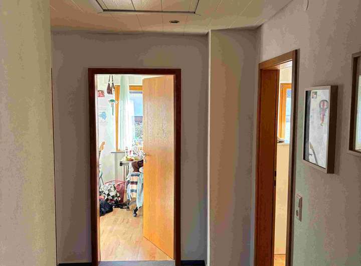 Familienfreundliches, gepflegtes EFH in einer Anliegerstraße mit großem Garten. Das Haus verfügt über ein Gäste-WC, ein Badezimmer und einer normalen Innenausstattung (EBK, Badmöbel, Wohnzimmerschränke). Ebenfalls ist das Haus vollunterkellert und hat eine Bühne. Die Doppelgarage bietet Platz für Fahrzeuge sowie Abstellplätze davor. Waschküche im Keller ist vorhanden. Ein Holzofen im Flur kann betrieben werden. Die PV-Anlage sorgt für geringe Stromkosten. (30% Eigennutzung). Im April 2025 wurde eine WP installiert. Das Haus mit Dach ist vollständig gedämmt. Heizköper sind im Haus verbaut.