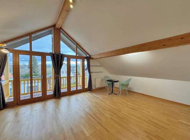 Durch die hohen Decken, durch die großzügige Verglasung und den offenen Schnitt bietet die Wohnung Wohnqualität. Der Süd-Balkon lädt zum Geniessen ein.
