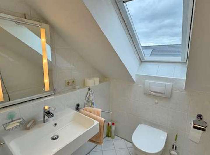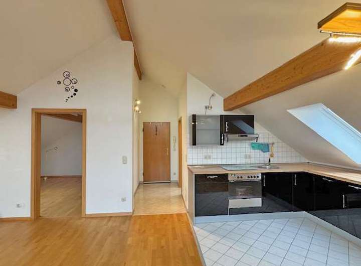 Herrliche 2-Zimmer-Dachgeschosswohnung mit offenem Sichtdachstuhl und Süd-Balkon mit Weitblick. Die Wohnung befindet sich in einem sehr gepflegten 6-Parteien Haus, Baujahr 1996, im Dachgeschoss in einer ruhigen Anwohnerstraße in Neukeferloh.