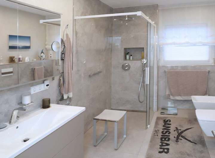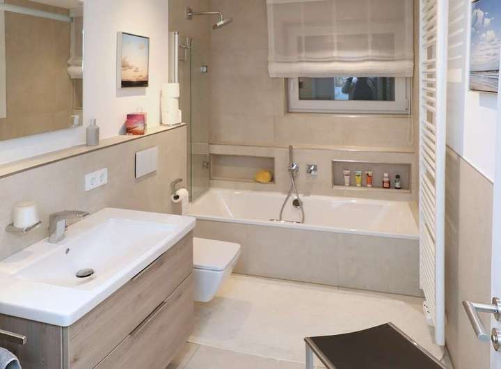 • Tageslichtbadezimmer mit Wanne + Dusche