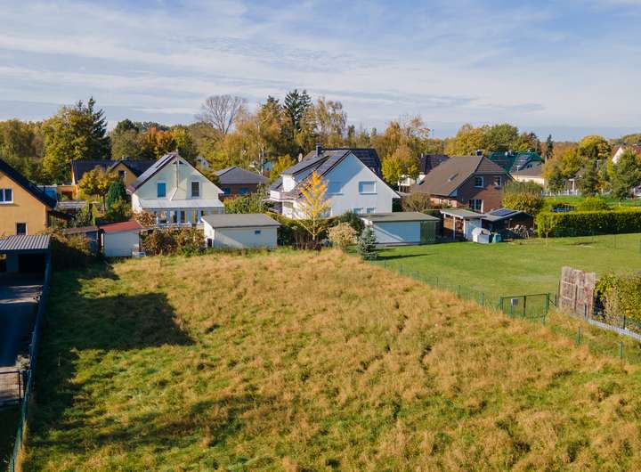 Das Grundstück befindet sich in einer bevorzugten Wohnlage von Schöneiche bei Berlin, einer beliebten Waldgemeinde am östlichen Stadtrand der Hauptstadt. Die Umgebung ist geprägt von gepflegten Einfamilienhäusern, Doppelhäusern und großzügigen Gärten – ein harmonisches, ruhiges Wohnumfeld mit gewachsenem Charakter.