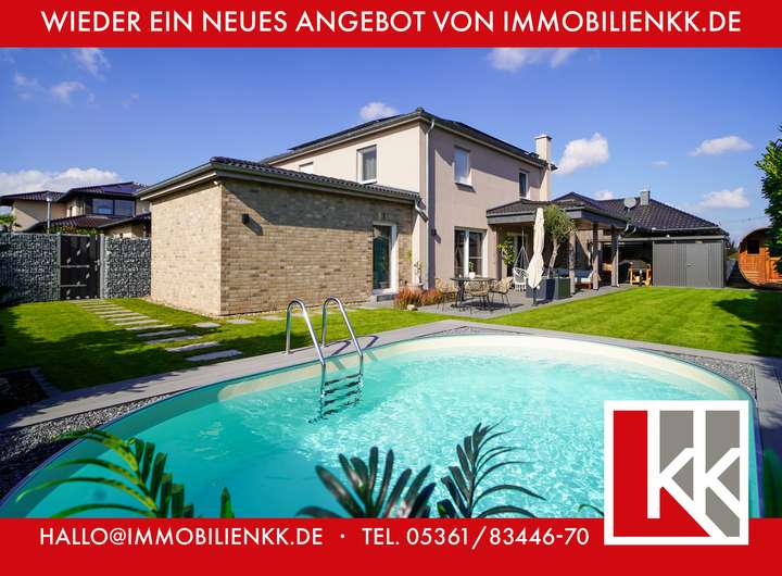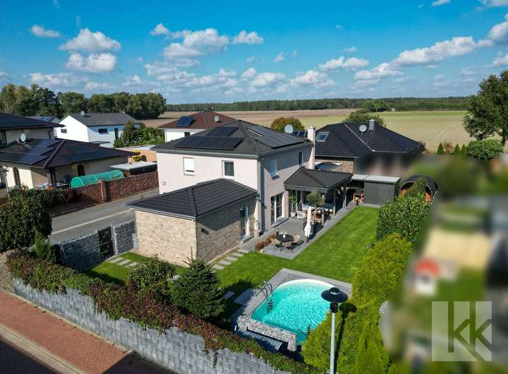Modern, energieeffizient, stilvoll – Einfamilienhaus mit Pool und PV-Anlage in Rühen