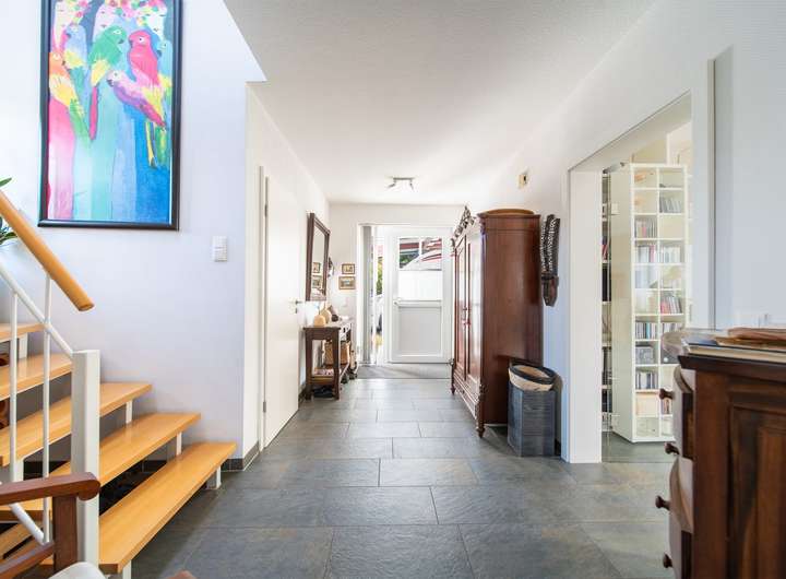 Die solide Konstruktion (Porotonmauerwerk mit Kerndämmung, Stahlbetondecken, WU-Bodenplatte) und die hochwertige Dacheindeckung (Betondachsteine, Marke Nelskamp) unterstreichen den langlebigen Charakter der Immobilie.