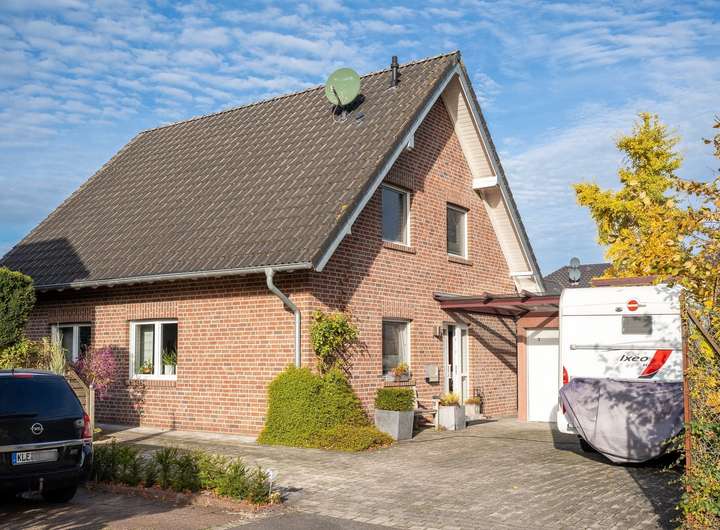 Ein gepflegtes Einfamilienhaus aus dem Jahr 2007 in massiver Bauweise mit heller Verblendfassade. Auf rund ca. 125 m² Wohnfläche (ohne Keller) bietet das Haus einen klassischen, familienfreundlichen Grundriss mit großzügigem Wohn-/Essbereich und Zugang in den Garten, separater Küche, Hauswirtschaftsraum sowie Gäste-WC mit Dusche im Erdgeschoss. Im Dachgeschoss befinden sich weitere Zimmer und das Familienbad; der Spitzboden dient als Abstellfläche.