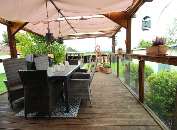 Charmantes Haus mit drei separaten Wohnungen, großem Grundstück und Fernblick.