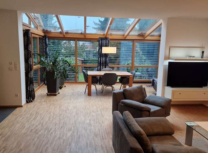 Großes Wohnzimmer mit integriertem Wintergarten, neue PV-Anlage mit Wallbox. Alle Schlafzimmer etwa 15 m² groß und eine Wohnküche mit angrenzendem Hauswirtschaftsraum für Waschmaschine und Trockner.