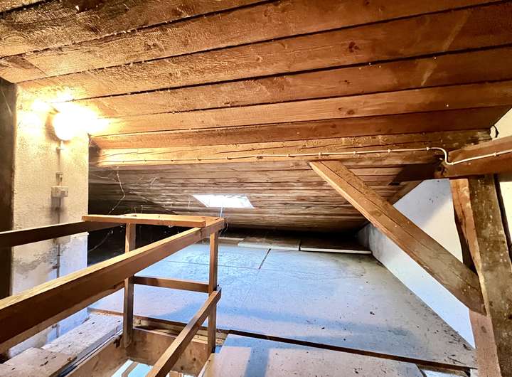 Das Obergeschoss verfügt über ein großzügiges Schlafzimmer, zwei Kinderzimmer sowie ein Badezimmer mit Badewanne, WC und Waschtisch.