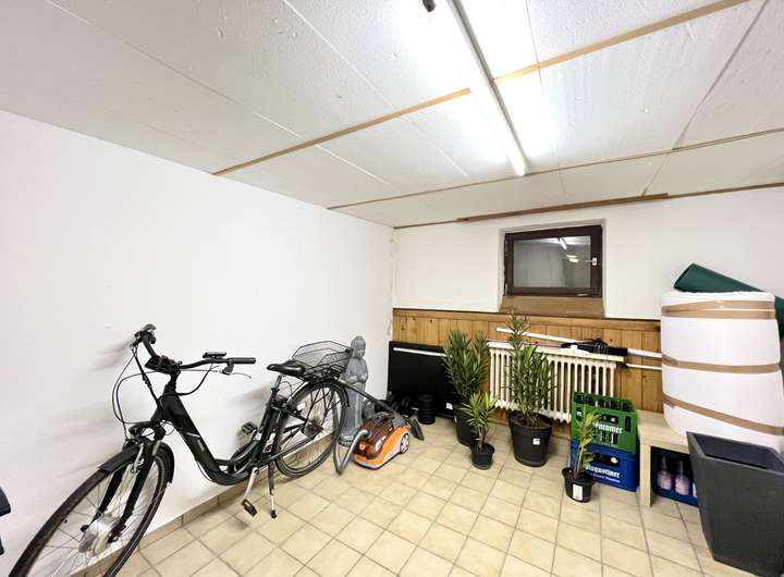 Der Keller befindet sich in einem sehr guten Zustand und bietet einen großen Hobbyraum, einen Heizraum, einen Lagerraum sowie einen Flur mit Anschlüssen für Waschmaschine und Trockner.
