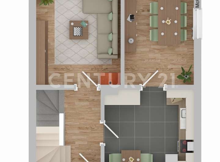 Im Erdgeschoss erwarten Sie zwei helle Zimmer, eine gemütliche Küche mit Platz zum Kochen und Verweilen sowie ein Gäste-WC. Mit einem Wanddurchbruch ließe sich ein großzügiger Wohn- und Essbereich gestalten.