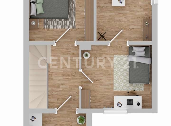 Das Obergeschoss bietet vier weitere, gut geschnittene Räume, perfekt als Schlaf-, Kinder- oder Arbeitszimmer.
