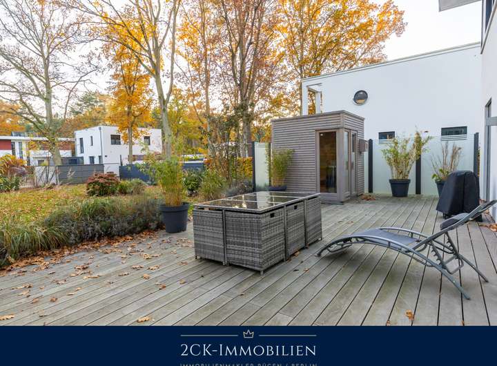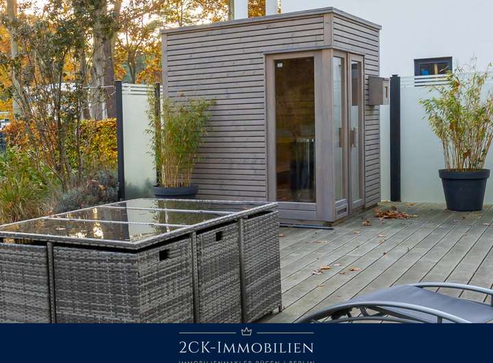 Ein besonderes Highlight ist die Außensauna – Ihr ganz persönlicher Rückzugsort, in dem Sie nach einem langen Tag zur Ruhe kommen können. Im parkähnlich angelegten Garten auf 952 m² Grundstücksfläche finden Sie Raum für Entspannung, Spiel und grüne Träume. Die 60 m² große Terrasse mit südlicher Ausrichtung lädt zu langen Sommerabenden ein – ob beim Familiengrillen mit dem fest installierten Gasgrill oder beim Glas Wein im Sonnenuntergang.