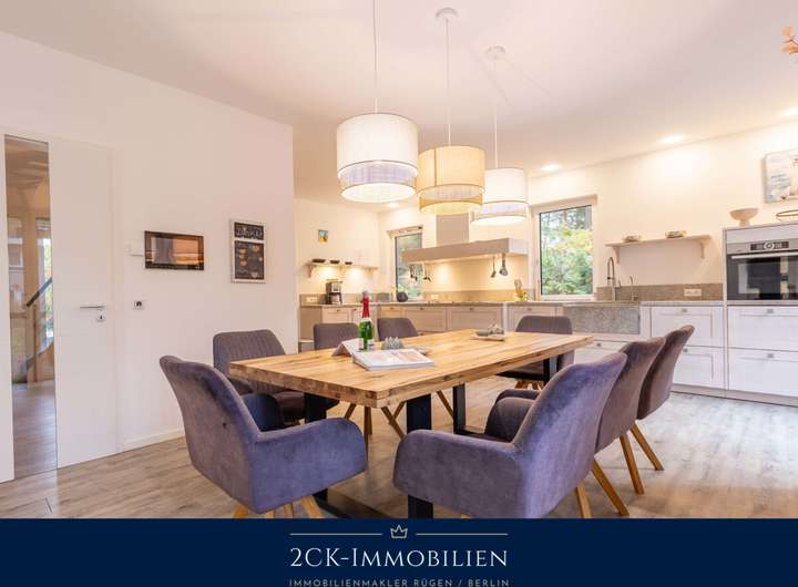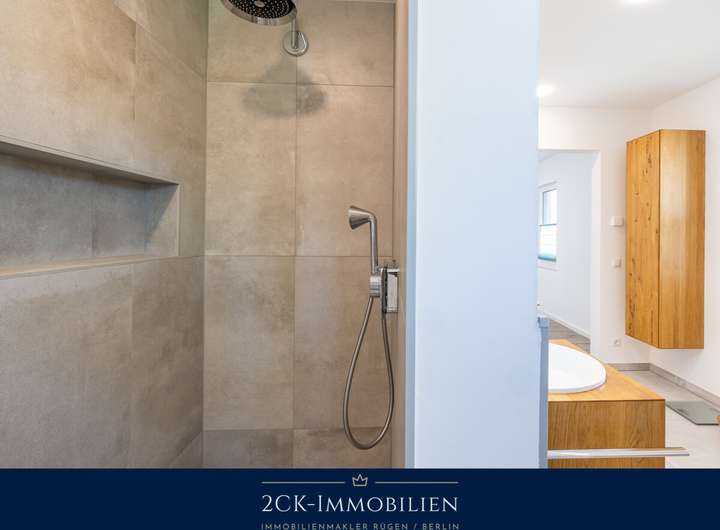 Im Erdgeschoss bildet der offene Wohn-, Ess- und Küchenbereich das Herzstück des Hauses – ein Ort, an dem Familie, Freunde und Genuss aufeinandertreffen. Die vollausgestattete Einbauküche mit modernsten Elektrogeräten lässt das Herz jedes Hobbykochs höherschlagen. Das elegante Gästebad mit ebenerdiger Dusche sowie der praktische Hauswirtschaftsraum runden das Raumangebot perfekt ab. Der direkt angeschlossene Anbau (22,33 m²) beherbergt die intelligente Gebäudetechnik – unauffällig im Hintergrund, aber jederzeit einsatzbereit.