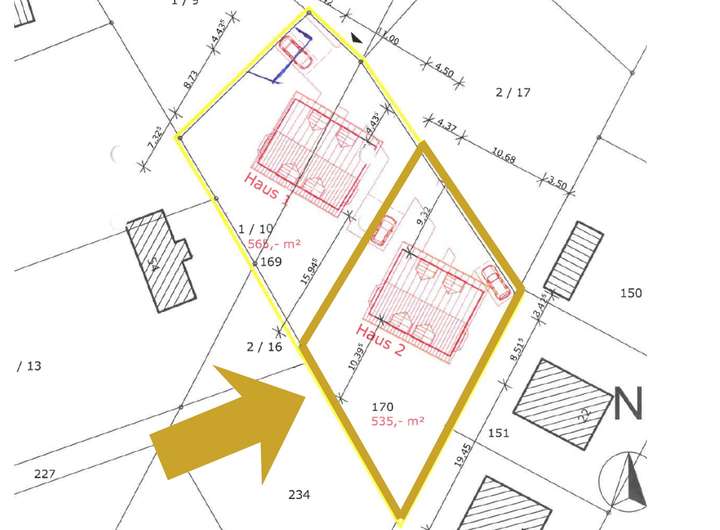 Teilungsmöglichkeit: Es besteht die Option, das Grundstück real zu teilen, sodass zwei Parzellen im Verhältnis 40/60 entstehen. Dies eröffnet interessante Möglichkeiten – beispielsweise den Bau beider Doppelhaushälften mit anschließendem Verkauf einer fertigen Einheit. Sollte ein solches Vorhaben für den Käufer interessant sein, kann der jetzige Eigentümer die Teilung auf Wunsch bereits vorab beantragen.
