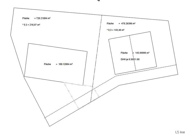 Mögliche Gebäudegröße (DHH): je ca. 6,50 / 11,00