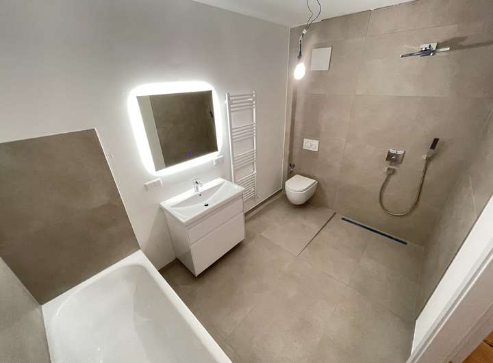 - Exklusive Bäder mit großformatigen Fliesen (60×60 oder 60×120 cm) – Eleganz und Qualität in Perfektion