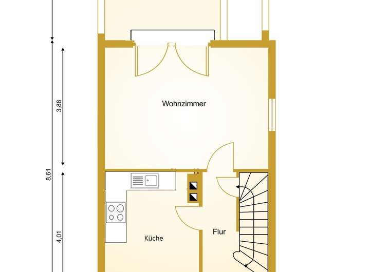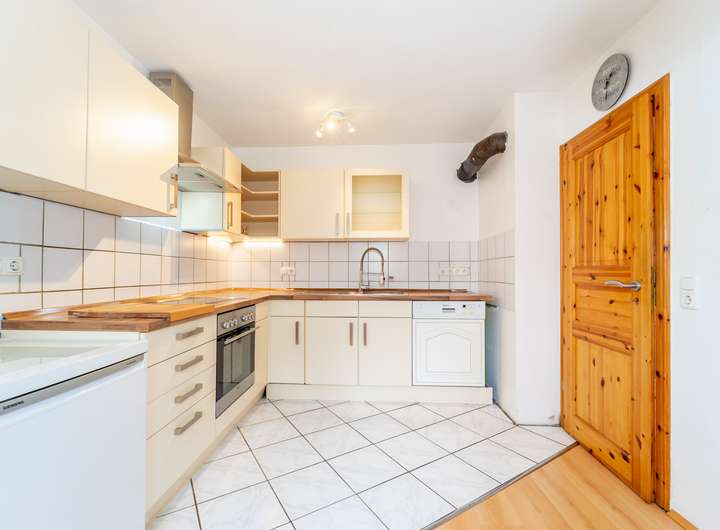 Im Erdgeschoss erwarten Sie eine Küche mit Ceranfeld, Umluftherd, Dunstabzugshaube