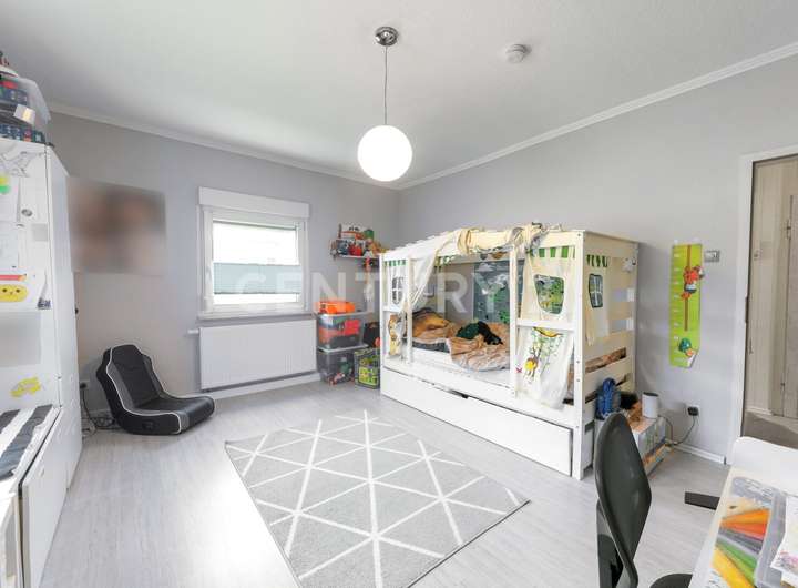 Im Erdgeschoss erwartet Sie eine helle, gut strukturierte Wohnung mit einem kleinen aber feinen und modernen Badezimmer, drei Schlafzimmern und einer funktionalen Küche, die durch einen praktischen Abstellraum ergänzt wird. Der 2017 entstandene Anbau bildet mit rund 35 m² das Herzstück der Etage: ein großzügiges, lichtdurchflutetes Wohnzimmer mit direktem Zugang in den Garten – ideal für entspannte Stunden mit Familie und Freunden.