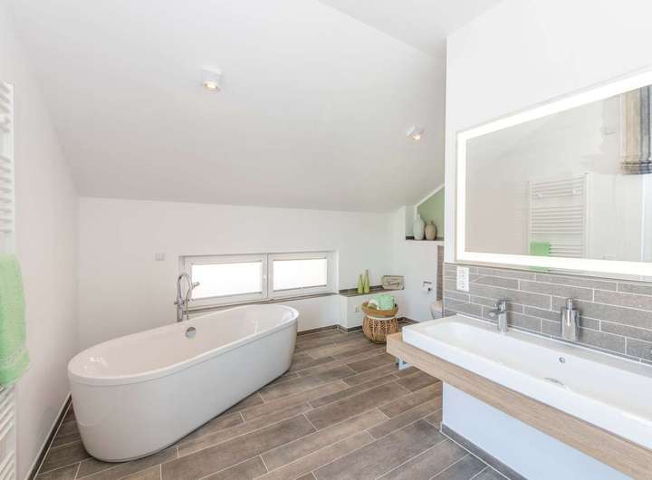 Modernes Design und wohnliche Großzügigkeit: Das ist unser LifeStyle 16.05 P. Ganz besonders an diesem Einfamilienhaus sind die beiden zueinander versetzten Baukörper, deren Pultdächer ebenfalls versetzt sind und so die Fassade aufbrechen - ein absoluter Hingucker. Innen können sich die Bewohner auf 160 m² und zwei Wohnebenen frei entfalten. Der Grundriss des Erdgeschosses ist weitgehend offengehalten. Die großflächigen Fenstertüren im Wohn-Ess-Bereich lenken den Blick nach draußen und schaffen eine Verbindung zur Umgebung. Die lichtdurchfluteten Räume sind großzügig geschnitten und bieten viel Platz für individuelle Gestaltung. Im Dachgeschoss gibt es drei Schlafzimmer - eines davon mit Ankleide -, zwei Bäder und eine Galerie. Die kluge Raumaufteilung sorgt für Platz; so können alle Bedürfnisse und Ideen Raum bekommen. Egal, ob du ein Homeoffice einrichten, einen Hobbyraum gestalten oder einfach nur einen Rückzugsort für die Familie schaffen möchtest - in diesem Haus hast du die Freiheit, deine Wohnträume zu verwirklichen.