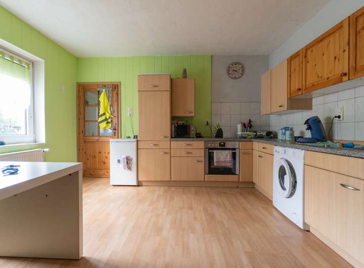 Obwohl das Haus insgesamt sanierungsbedürftig ist, kann es sofort bezogen werden. Die Basis ist solide: Wichtige Bereiche wie die Fenster und das Dach sind in einem guten Zustand. Auch Küche, Bad, das Schlafzimmer und das Wohnzimmer sind gepflegt. Lediglich der Anbau benötigt noch Fertigstellungsarbeiten.