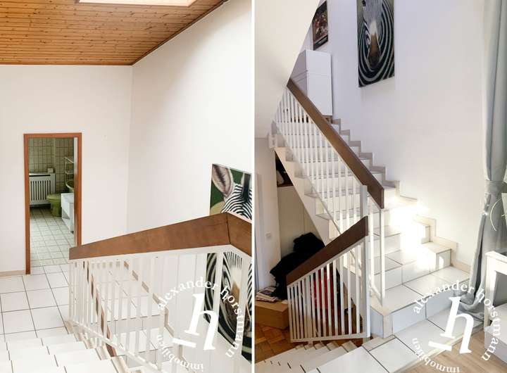 In massiver Bauweise im Jahr 1978 als Endhaus einer schönen Reihenhausanlage in Split-Level-Bauweise errichtet, bietet dieses Objekt eine attraktive Architektursprache ganz im Stile der Achtziger. Während klassische Einfamilienhäuser zwei- oder dreigeschossig gebaut werden, verfügt ein Split-Level-Haus über mehrere Ebenen, die um eine halbe Geschosshöhe versetzt und über Treppen miteinander verbunden sind. Die Folge: fließende Raumübergänge, die eine offene Wohnatmosphäre schaffen.