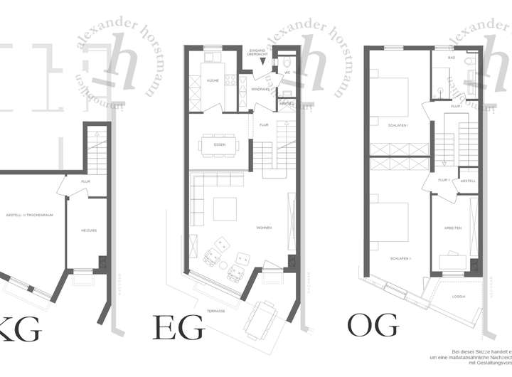 Über drei Ebenen verteilen sich die rd. 117 m² Wohnflächen des Hauses. Mit seinen 4 Zimmern ideal für ein Paar oder für eine kleine Familie.