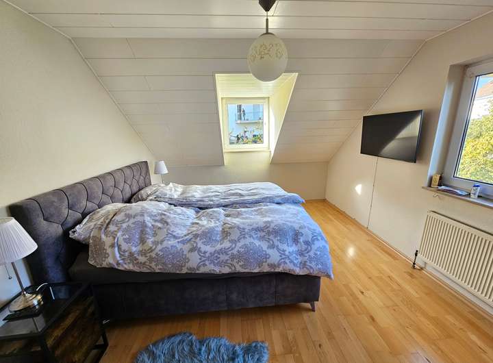 Im Dachgeschoss erwarten Sie drei geräumige Schlafzimmer, ein helles Bad sowie ein Balkon, der zum Verweilen einlädt und den Wohnkomfort abrundet.