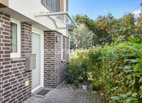 • Pflegeleichte Terrasse mit kleinem Garten und Markise