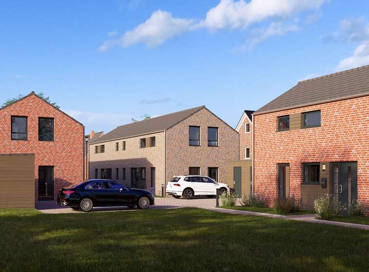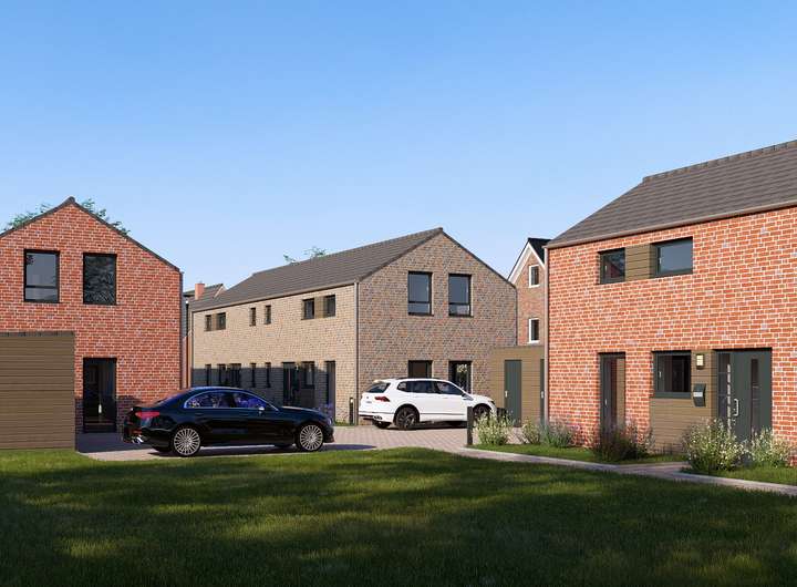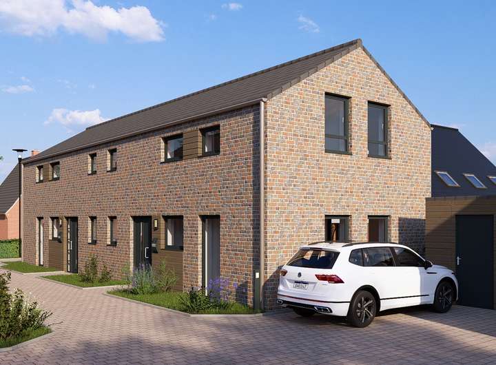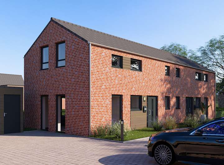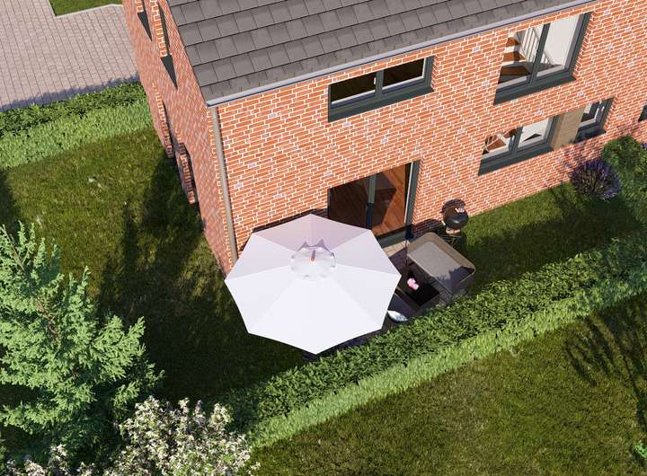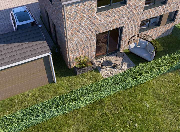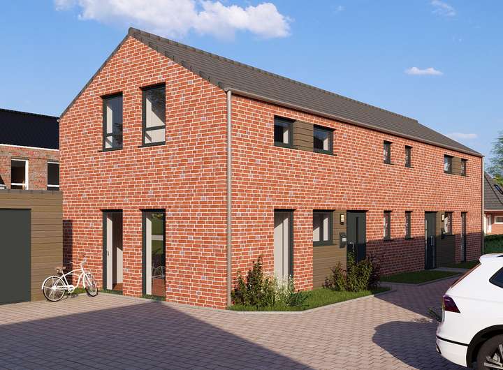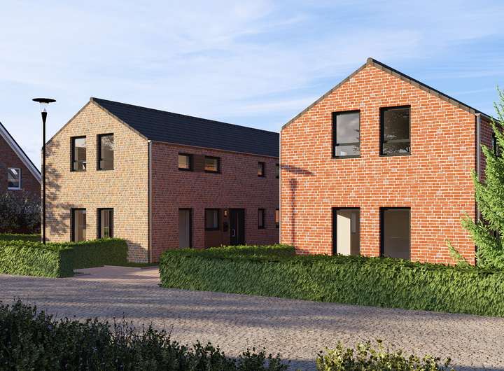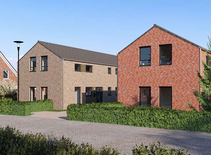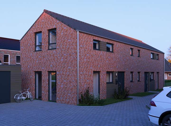 Die massiv gebauten Doppelhäuser verfügen über eine moderne Klinker-Fassade, sowie einer ansprechenden Außenarchitektur und sind mit optimal Süd-West ausgerichteten Terrassen ausgestattet.
