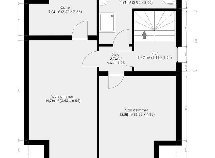 Dachgeschoss: 2-Zimmer-Wohnung ca. 41 m²