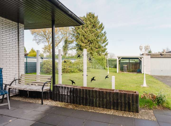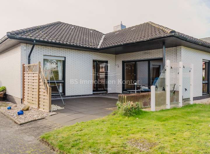 Dieser gepflegte Winkelbungalow aus dem Jahr 1981 befindet sich auf einem großzügigen Grundstück von ca. 750 m² in einer ruhigen Wohngegend von Papenburg. Mit einer Wohn-/Nutzfläche von ca. 117m² bietet das Haus eine durchdachte Raumaufteilung und ein angenehmes Wohnambiente. Der Eingangsbereich führt über den Flur in die verschiedenen Räume des Hauses. Neben einem Gäste-WC stehen ein helles Schlafzimmer, Gästezimmer, ein Badezimmer sowie eine Küche zur Verfügung. Das Esszimmer und der weitläufige Wohnbereich schaffen ein offenes und einladendes Raumgefühl mit viel Platz für Familie und Gäste. Sämtliche Wohnräume sind mit pflegeleichten Fliesen ausgestattet. Die Wärmeversorgung erfolgt über eine Gas-Zentralheizung aus dem Jahr 2009. Holzfenster unterstreichen den gemütlichen Charakter des Hauses. Ein besonderes Highlight ist die überdachte Terrasse, die direkt an den Wohnbereich anschließt und zu entspannten Stunden im Freien einlädt – ob zum Frühstück im Sommer oder für gemütliche Abende mit Freunden. Zum Objekt gehören außerdem eine Garage sowie ein Carport, die ausreichend Platz für Fahrzeuge und zusätzlichen Stauraum bieten. Der liebevoll angelegte Garten rundet das Gesamtbild dieser Immobilie ab und schafft eine angenehme Atmosphäre zum Wohlfühlen.