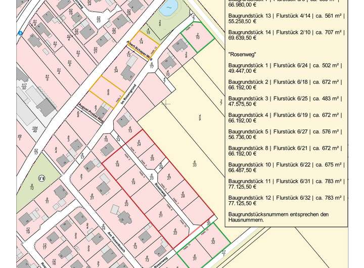 Die jeweiligen Baugrundstücke liegen in den Straßen "Im Rosengrund" und "Rosenweg" nahe der Evenser Straße.
