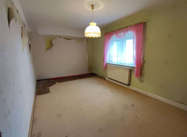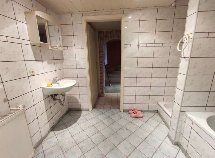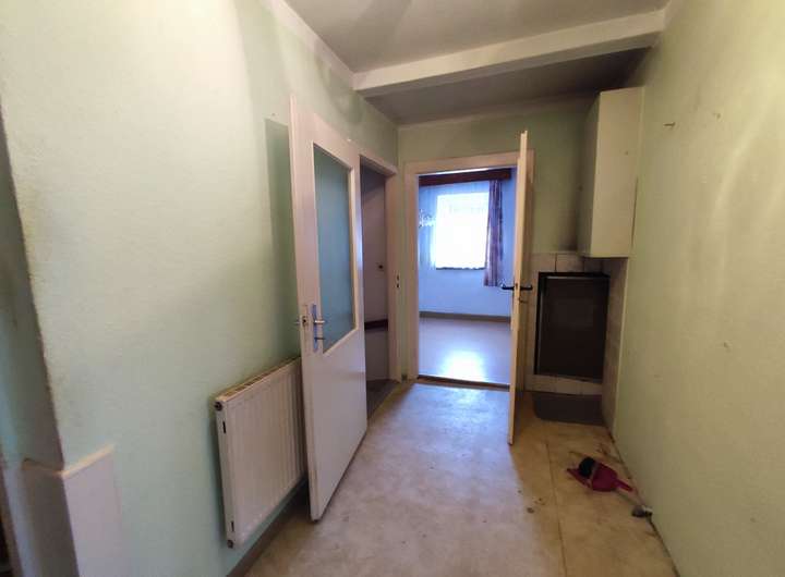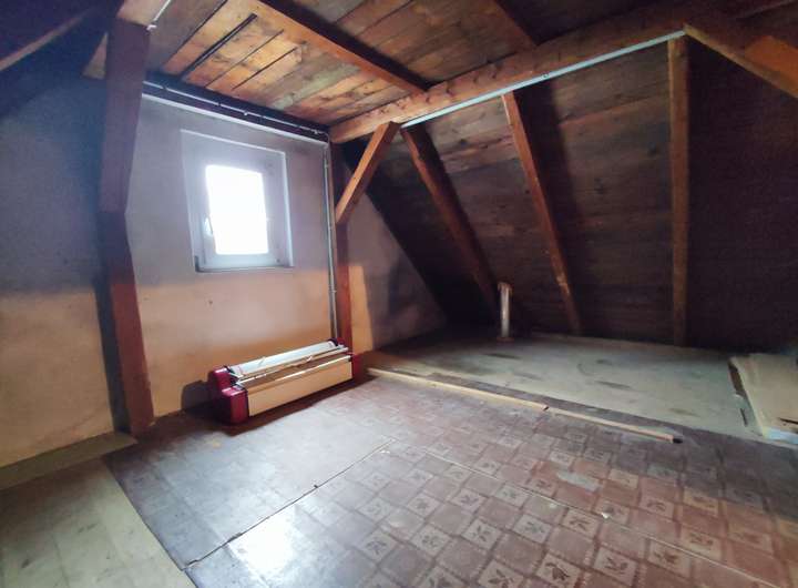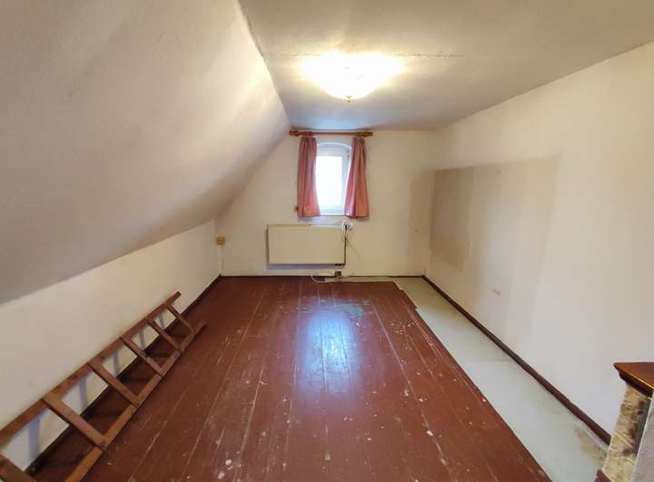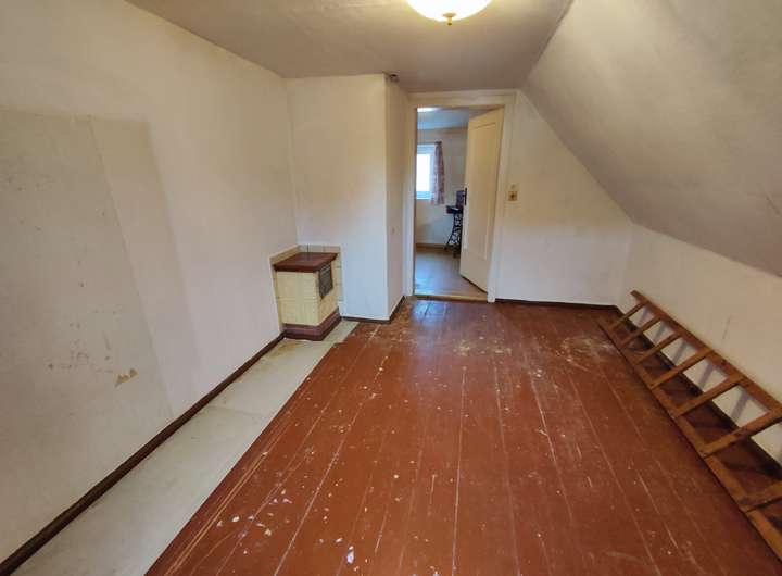 Man betritt das Gebäude und befindet sich direkt im Flur. Hier besteht der Zugang zum Abstellraum und zur Garage. Ein weiterer Zugang führt zum kleinen Gewölbekeller. Weiter befinden sich auf dieser Etage ein Wohnraum, eine separate Toilette, das große Bad mit Fenster, Wanne, Dusche, Waschtisch und Waschmaschinenanschluss, ein weiteres Zimmer und der Zugang zu einem weiteren kleinen Keller sowie dem Ausgang in den Garten. Über eine Steintreppe gelangt man ins Obergeschoss. Hier gehen alle Räume vom Flur ab. Sie finden hier eine große Küche, ein Schlafzimmer und das große Wohnzimmer. Von diesem haben sie Zutritt zum Balkon, auf welchem man gemütlich den Tag mit einem Glas Wein ausklingen lassen kann. Im Wohnzimmer gibt es einen Luftschacht-Kachelofen, welcher vom Flur aus angeheizt wurde und welcher die Wärme auch ins ausgebaute Schlafzimmer im Dachgeschoss leitet. Die Funktionalität muss jedoch vor weiterer Nutzung von einem Schornsteinfeger geprüft werden, da dieser zwischenzeitlich still gelegt wurde. Im Schlafzimmer ist die zentrale Gasheizung untergebracht, wobei diese zur Zeit nicht funktionsfähig ist. Daher wurde zusätzlich ein Warmwasserspeicher dort angebracht. Auch diese muss vom Fachmann auf Reparaturfähigkeit geprüft bzw. ausgetauscht werden. Über eine Holztreppe erreicht man das teilweise ausgebaute Dachgeschoss. Ein Raum wurde hier als Schlafzimmer genutzt, der Rest ist Dachboden und Abstellfläche. Dieser kann auch zu weiterem Wohnraum ausgebaut werden. Ein kleiner Dachspitz dient ebenfalls als Abstellraum. Das Objekt ist teilweise unterkellert, es gibt 2 kleine Keller.