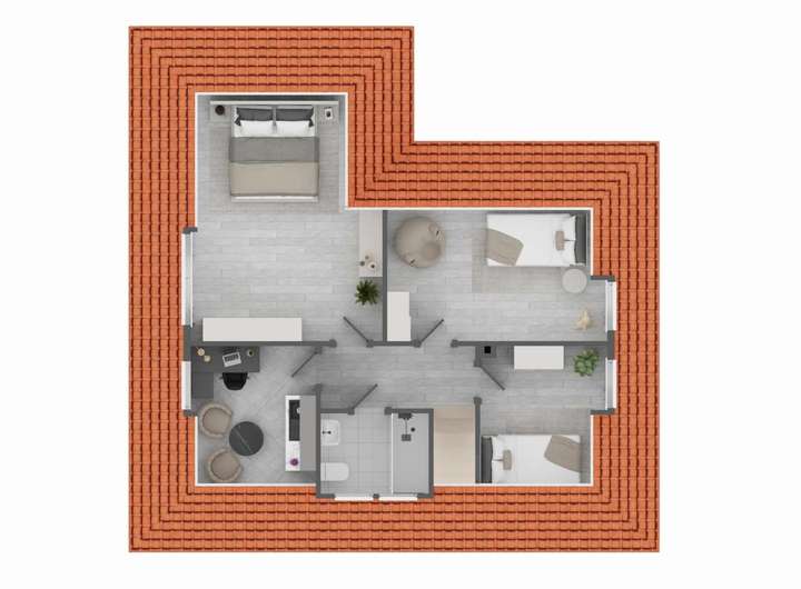 Im Obergeschoss stehen vier helle Zimmer und ein weiteres Duschbad zur Verfügung – ideal für Familien mit Platzbedarf.