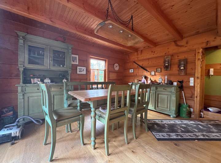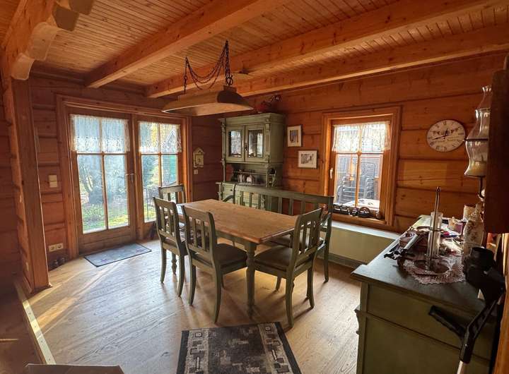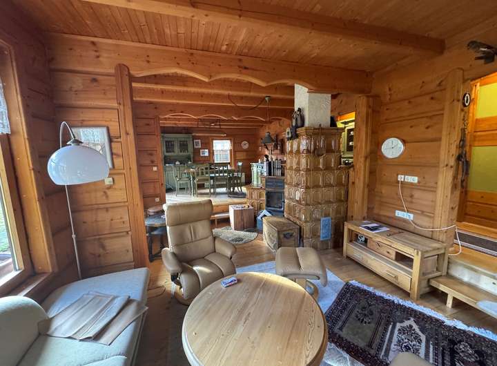 Eingebettet in ein großzügiges Grundstück von rund 1.180 m² präsentiert sich dieses exklusive Landhaus im klassischen Blockhausstil – ein Zuhause, das Wärme, Natürlichkeit und Stil harmonisch vereint. Errichtet im Jahr 1994 aus finnischer Polarkiefer, verströmt es schon beim Eintreten den unverwechselbaren Charme echter Handwerkskunst und vermittelt sofort ein Gefühl von Geborgenheit.