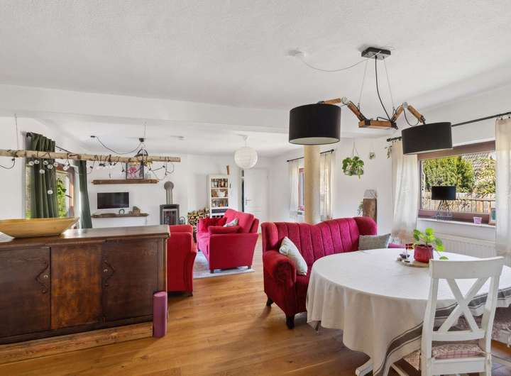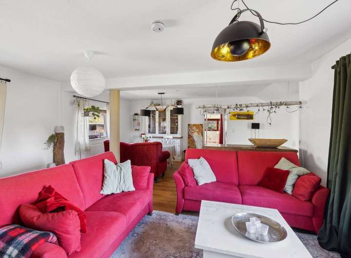 - Charme-Details: Freiliegende Deckenbalken und eine verwinkelte, großzügige Raumaufteilung verleihen dem Haus eine einzigartige Persönlichkeit.