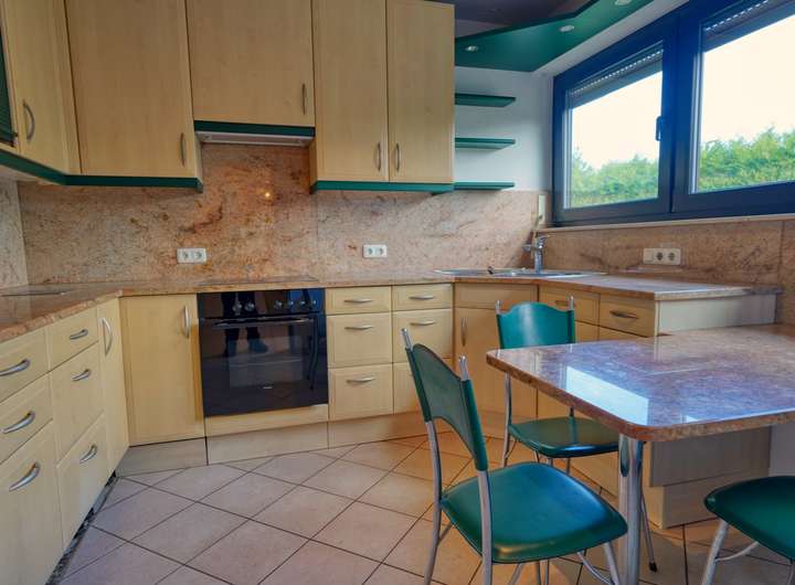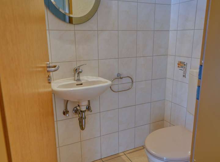 Die Immobilie verfügt über eine Einbauküche, die bereits komplett ausgestattet ist und somit sofort genutzt werden kann. Zudem sind Rollläden an allen Fenstern installiert, um Sonnenlicht und neugierige Blicke fernzuhalten. Eine praktische Gästetoilette ist ebenfalls vorhanden, was besonders bei Besuchern oder größeren Veranstaltungen von Vorteil ist. Diese Ausstattungsmerkmale erhöhen den Komfort und die Funktionalität der Immobilie und bieten den Bewohnern zusätzlichen Komfort im Alltag.
