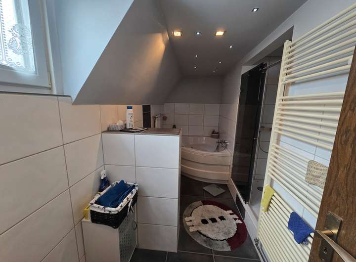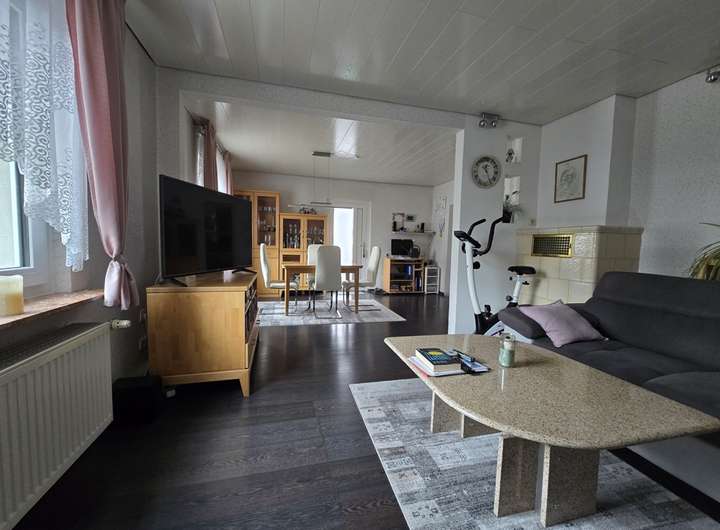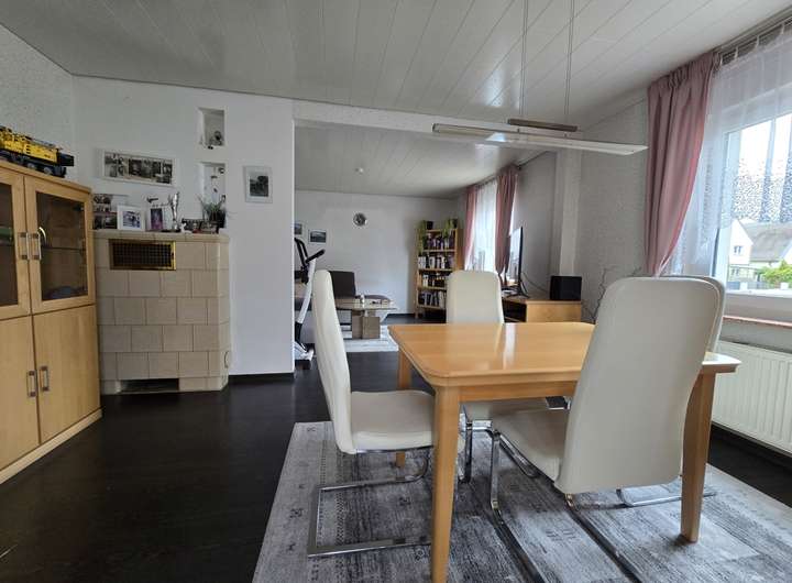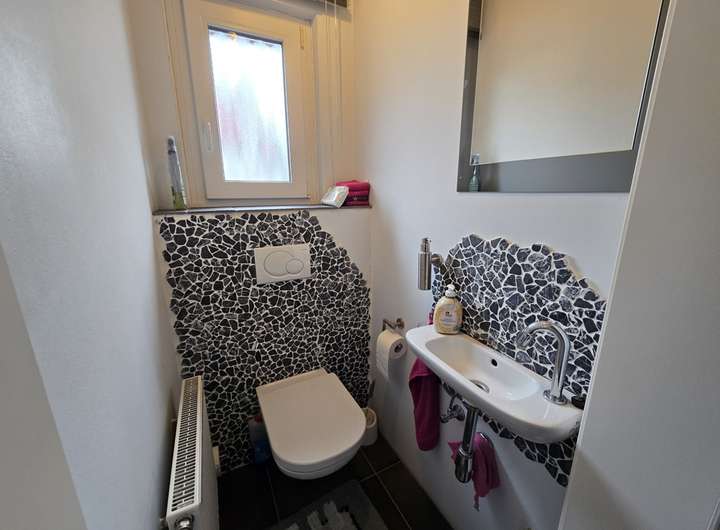 Mit insgesamt 4,5 Zimmern, darunter drei geräumige Schlafzimmer, findet jeder seinen Rückzugsort. Das elegant gestaltete Badezimmer wird durch ein Gäste-WC ergänzt, welches die Funktionalität des Hauses unterstreicht. Die vorhandene Einbauküche lädt zum gemeinsamen Kochen und Genießen ein.