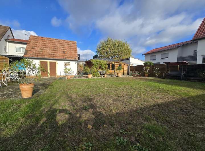 Der Keller bietet zusätzlichen Stauraum und nutzbare Fläche, während der sehr große Garten zum Entspannen, Spielen und Gärtnern einlädt. Hier finden Sie reichlich Platz für Freizeitaktivitäten im Freien. Ein praktischer Schuppen bietet zusätzlichen Stauraum für Gartengeräte, Fahrräder oder Hobbybedarf. Direkt am Haus befindet sich zudem eine Überdachung, die idealen Schutz für gemütliche Stunden im Freien oder als Unterstellmöglichkeit bietet.