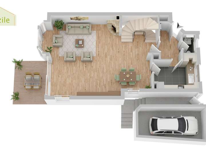 Zum Haus gehören außerdem eine Garage sowie ein Stellplatz davor. Der gepflegte Garten bietet zusätzlichen Raum zum Entspannen.