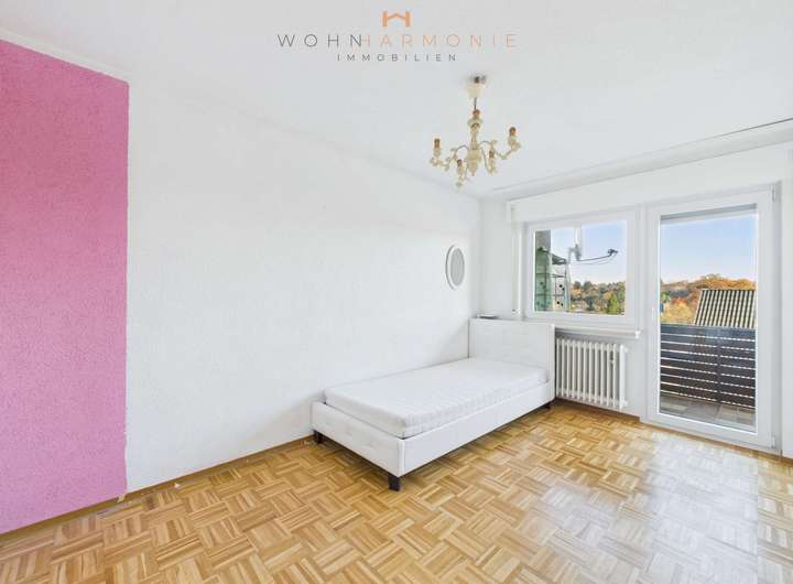 Hier erwarten Sie das Tageslichtbad sowie drei helle Schlafzimmer, zwei davon mit direktem Zugang auf den Balkon.