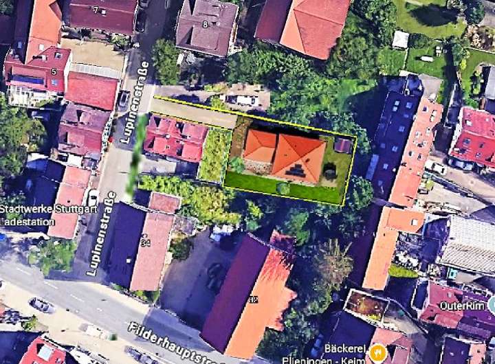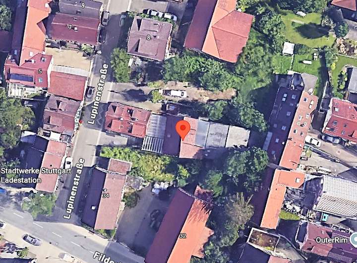 Das Grundstück liegt zentral in zweiter Reihe und ist nicht direkt von einer öffentlichen Straße (Filderhauptstr./Lupinenstr.) einsehbar. Sie erreichen es ausschließlich über eine eigene Zufahrt von der Lupinenstraße aus.